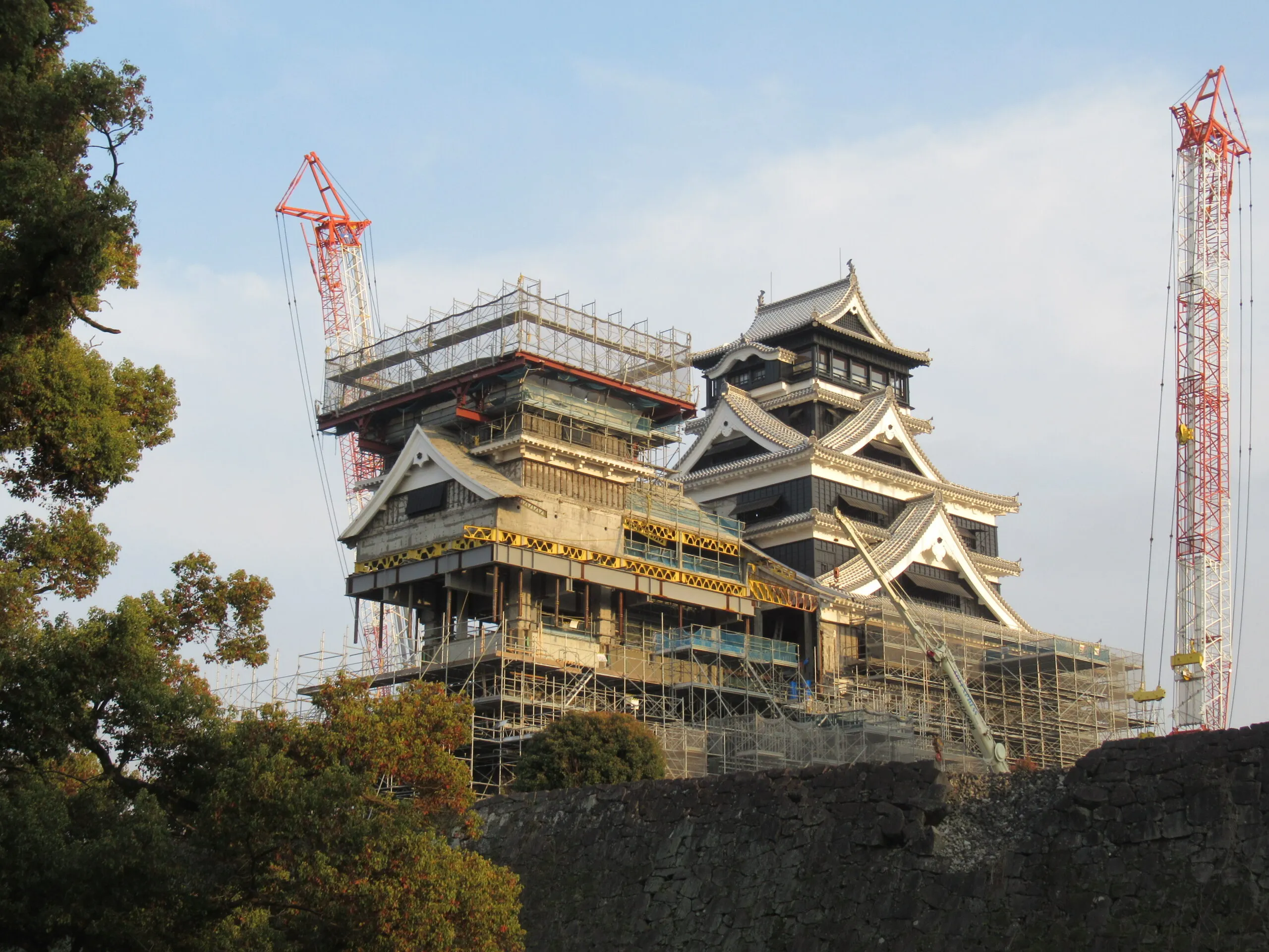 Subsequently, the second keep is now being restored. If you would visit Kumamoto now, you can see how the scaffolded castle building resembles a robot hero. And observing how the carpenters are working might be also interesting and an only-now experience! I would strongly recommend you to visit if you have the chance.