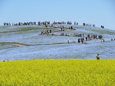 Hitachi Seaside Park  (ひたち海浜公園, Hitachi Kaihin Koen) is located in Ibaraki Prefecture on the Pacific Ocean coast of Japan. With an area of 215 hectares, it is one of the largest flower parks in Japan. In this large park, you can enjoy different kinds of flowers and trees throughout the year. There are also several other attractions such as a large lawn area, bicycle paths, an amusement park, and cafes and restaurants surrounded by natural beauty. It is the perfect destination for a day tour from Tokyo!