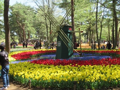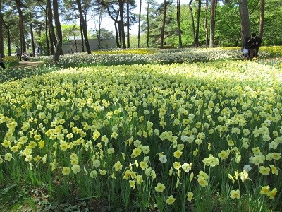There is also a narcissus garden in which more than 1 million narcissi (with about 500 different varieties) are planted. Full flowering is between late March to mid-April. Around mid-May, the rose garden is filled with roses in several pink colors.